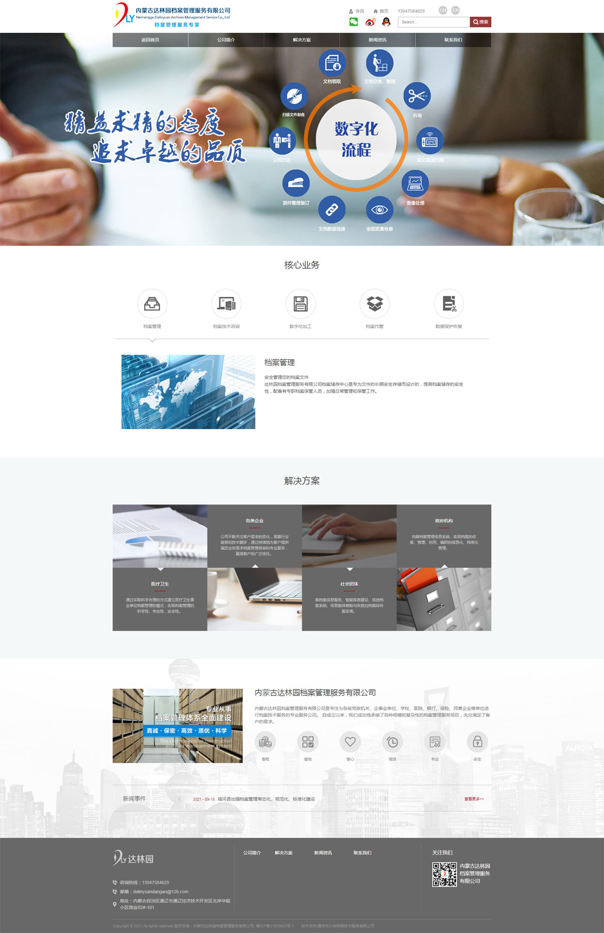 內(nèi)蒙古達(dá)林園檔案管理服務(wù)有限公司是專注為各級(jí)黨政機(jī)關(guān)、企事業(yè)單位、學(xué)校、醫(yī)院、銀行、保險(xiǎn)、民營(yíng)企業(yè)等單位進(jìn)行檔案技術(shù)服務(wù)的專業(yè)服務(wù)公司。主要從事各級(jí)各類文件資料檔案整理、檔案管理技術(shù)、檔案保管技術(shù)、檔案數(shù)字化技術(shù)咨詢、技術(shù)交流、技術(shù)服務(wù);檔案管理軟件開發(fā);檔案用品與設(shè)備銷售;檔案館信息化、智能化建設(shè),為社會(huì)各界提供檔案整理、數(shù)字化、歸檔、保管、查詢、利用等系列化服務(wù)?,F(xiàn)有檔案專業(yè)顧問多名,專業(yè)技術(shù)人員多名。